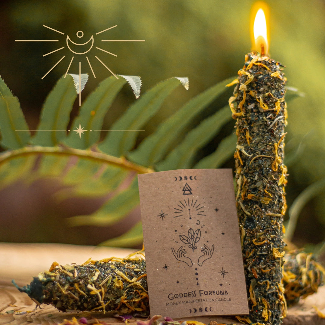 Our moon goddess Fortuna ritual candles are perfect for this coming cycle to complete your manifestations and meditations in the fields money , good luck, safety of you and your family, farming, health and care for loved ones. Inconspicuous and perfect as rustic decor.