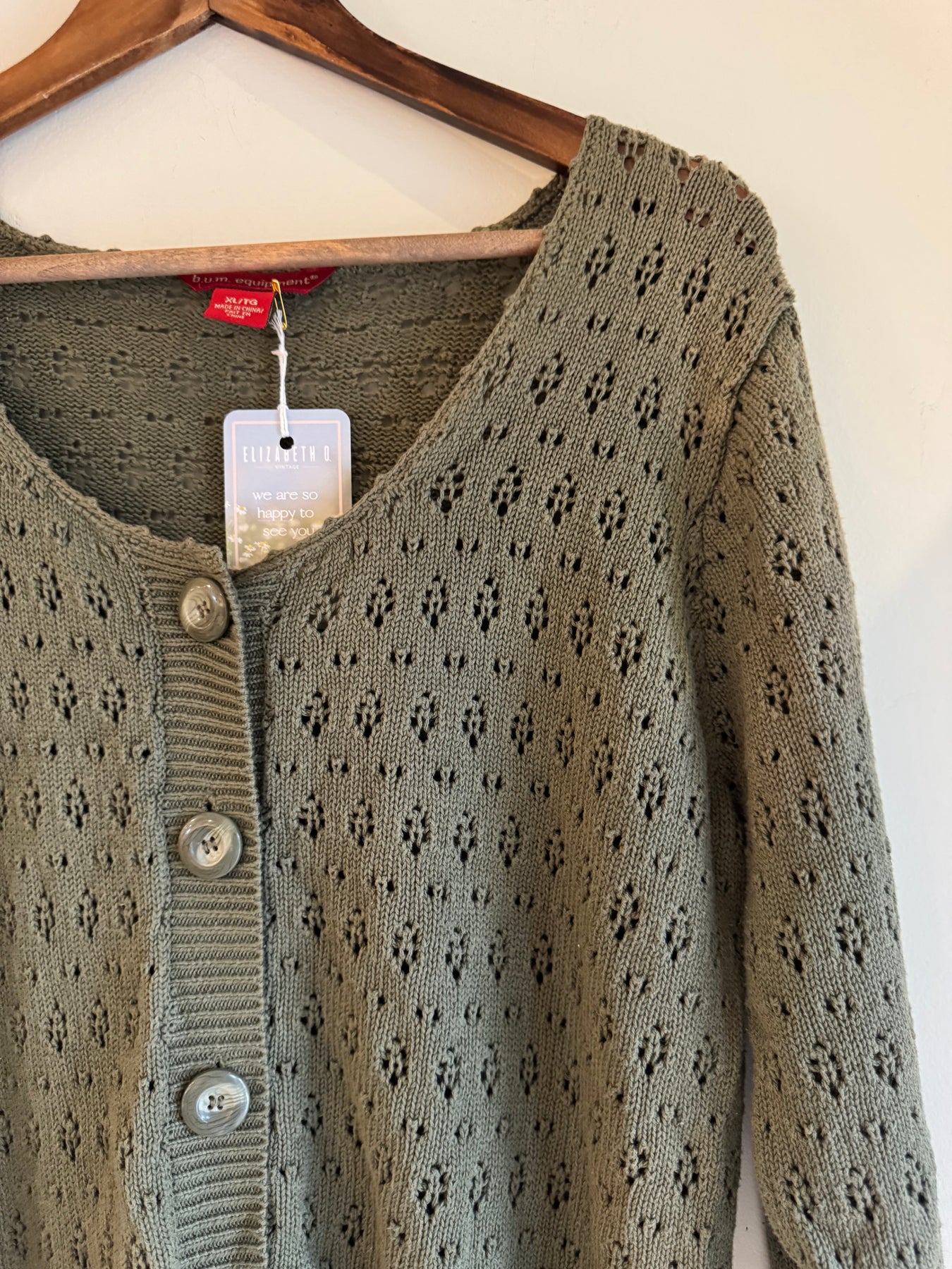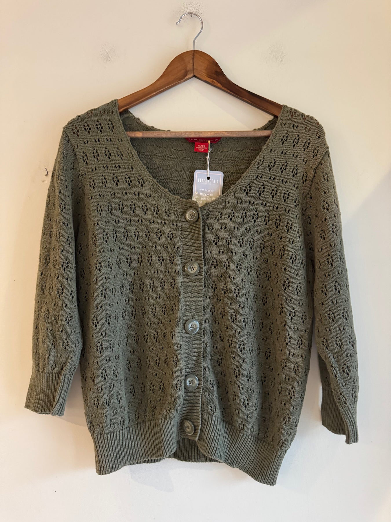 This pointelle cotton Y2K cardigan is just so sweet. Would look so cute with jeans and a little tank top.  the brand is B.U.M. Equipment. Tagged a Size XL. 100% cotton.