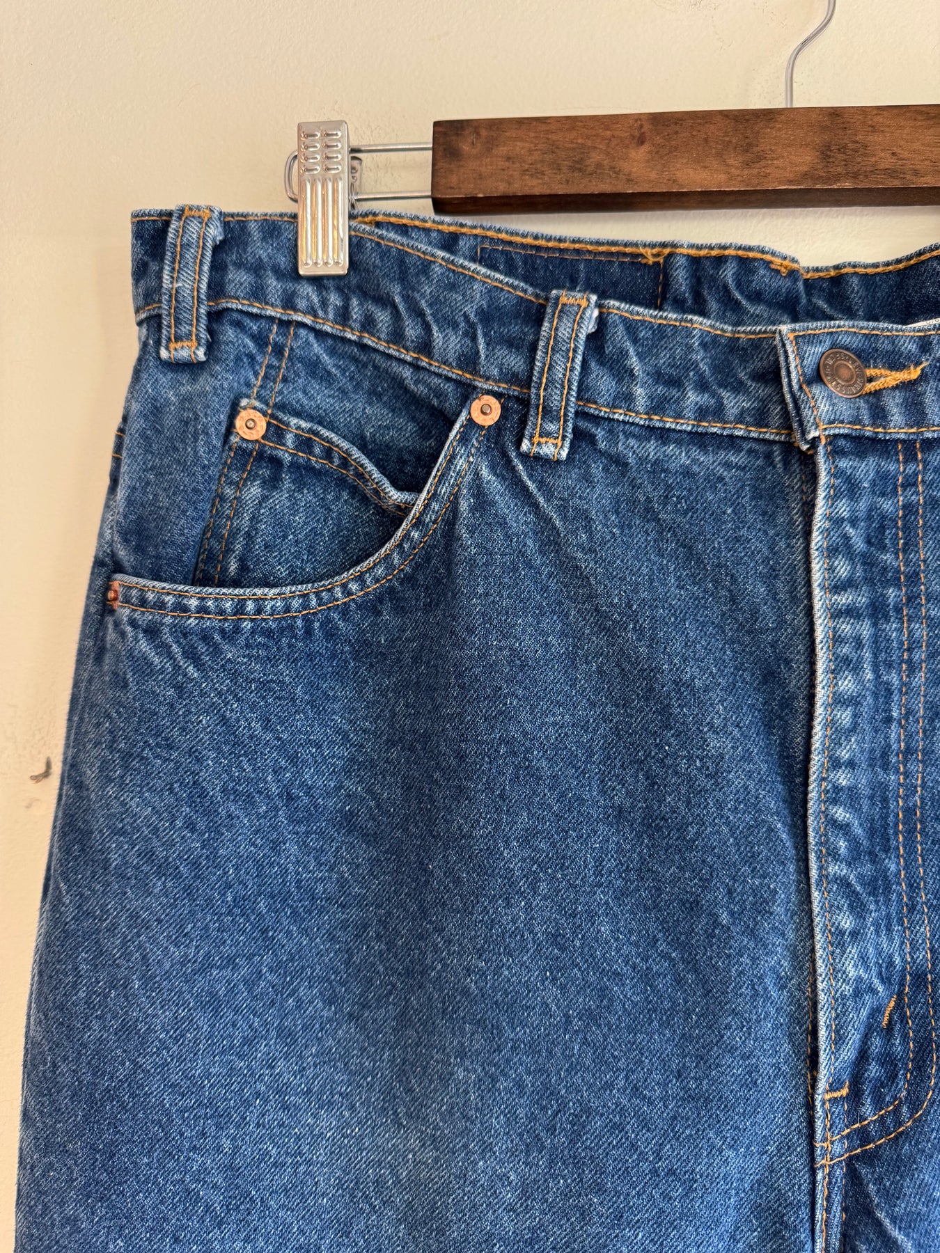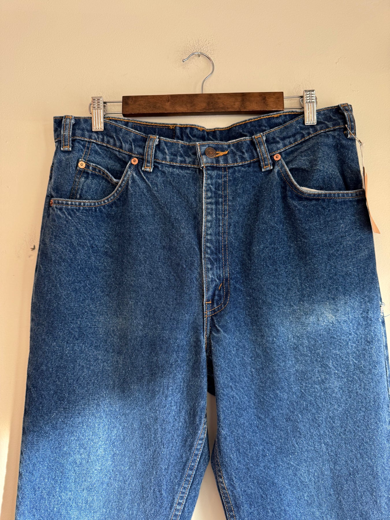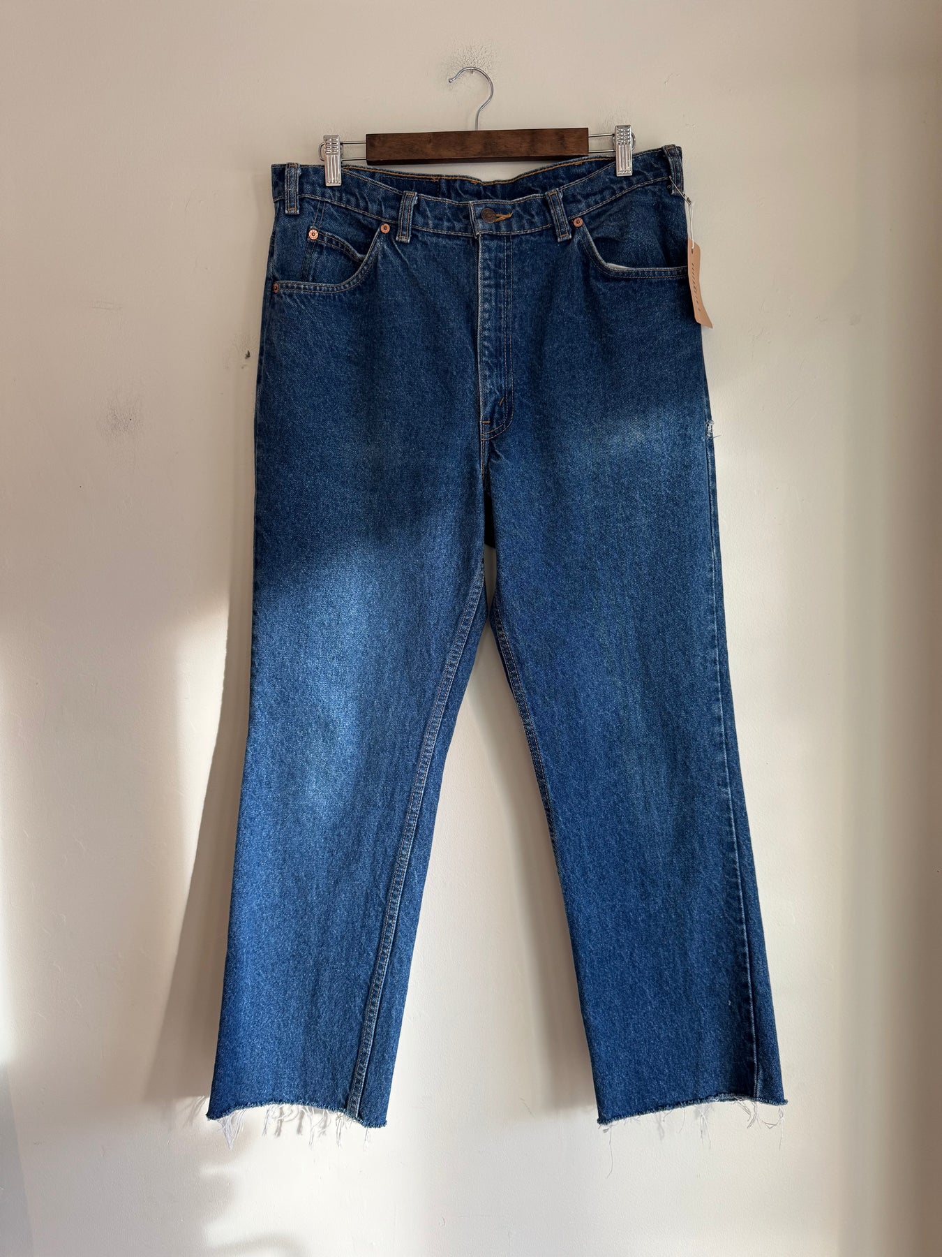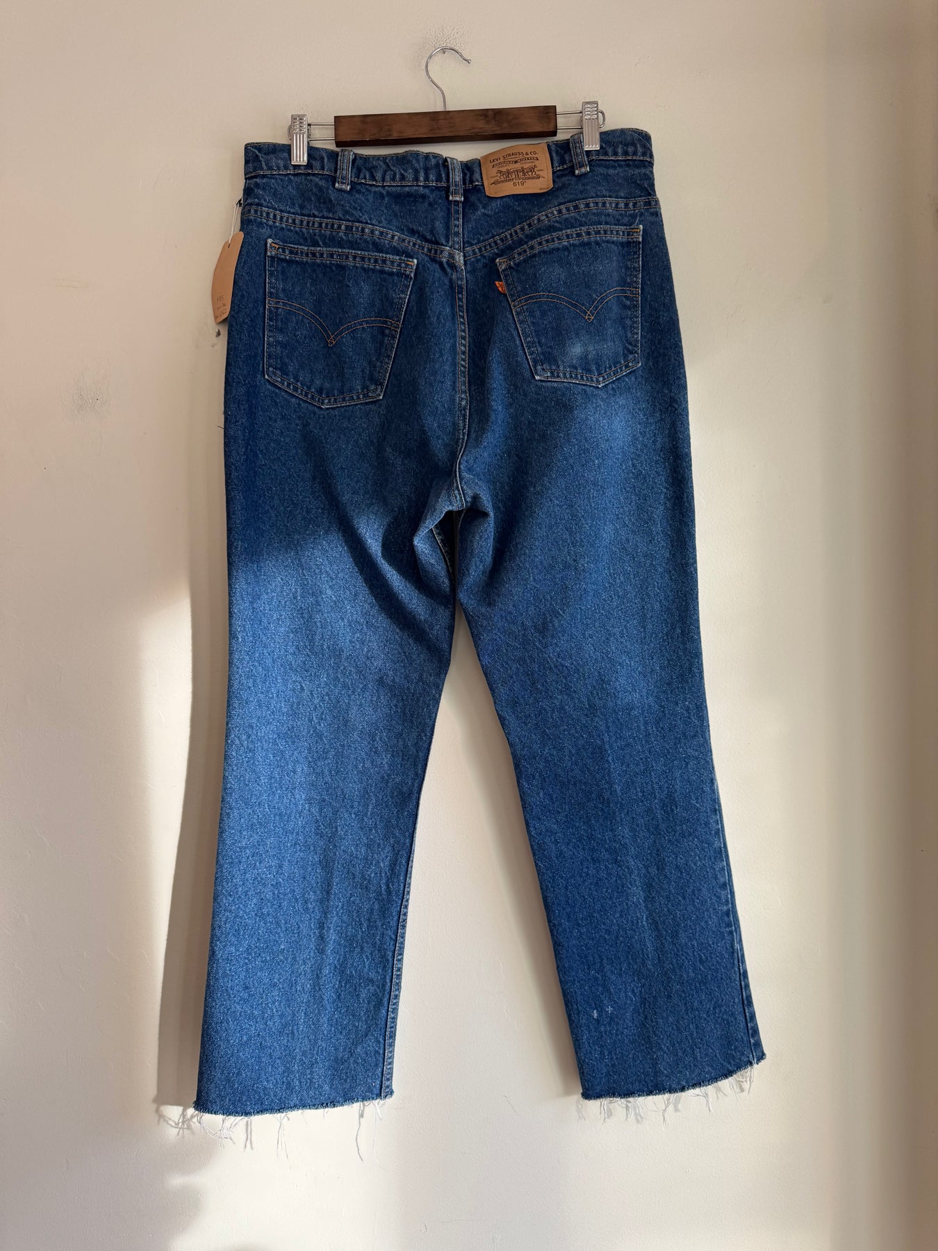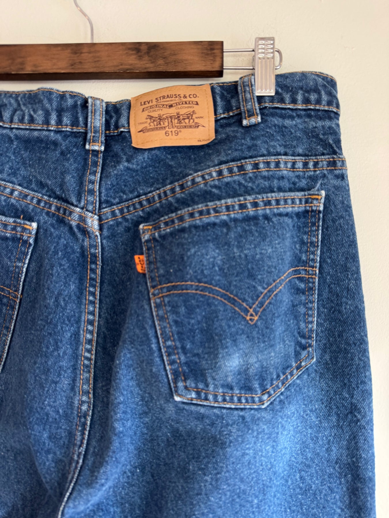 These everyday blue wash Levi’s in the 619 fit are such a great pair to add to your closet. Made in Canada and 100% cotton. Some vintage wear on the side seam.