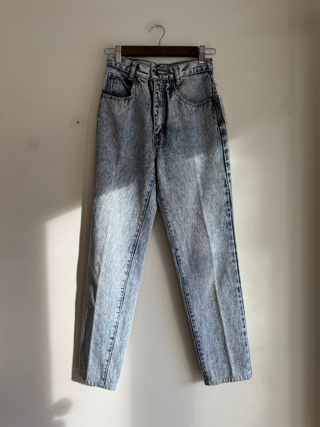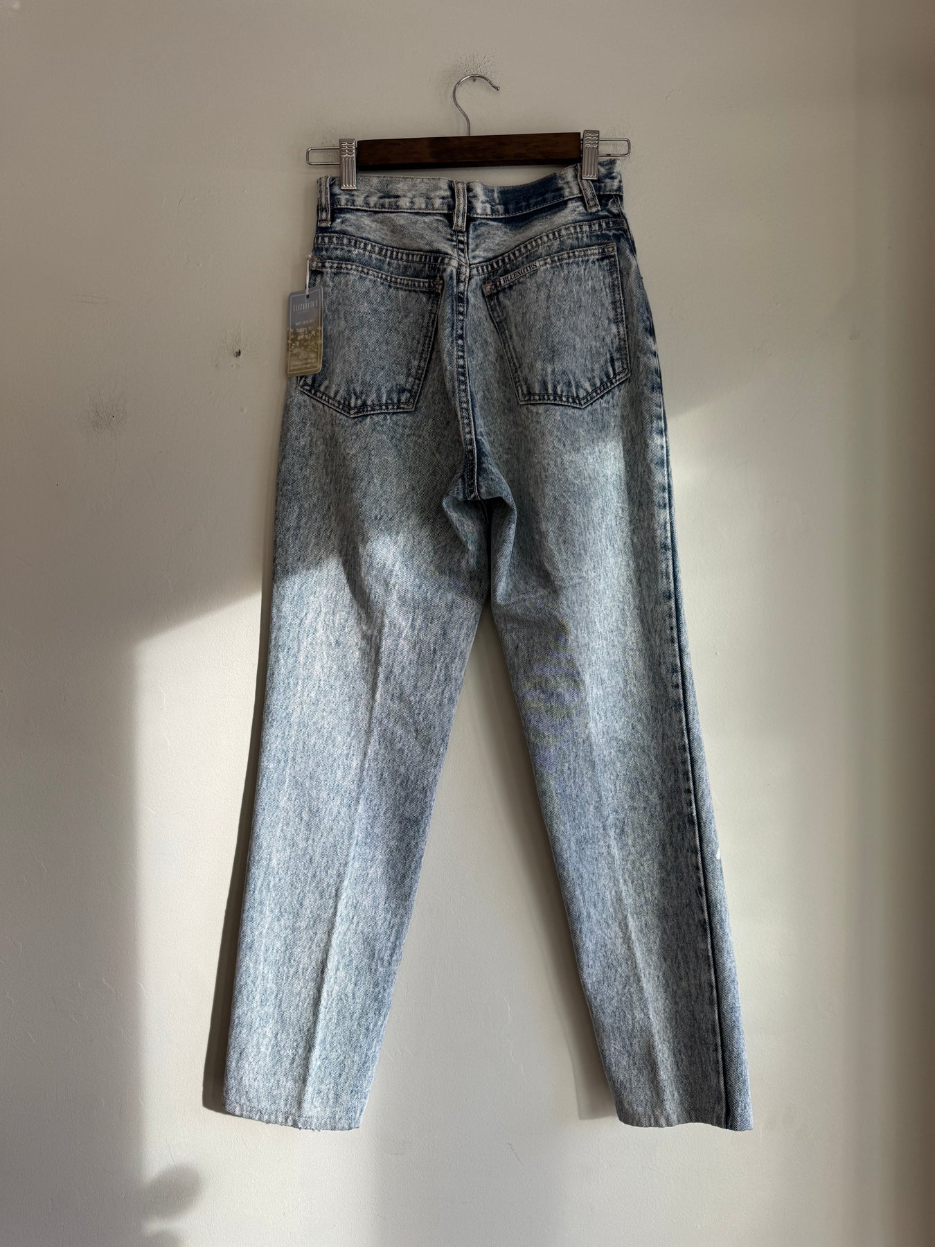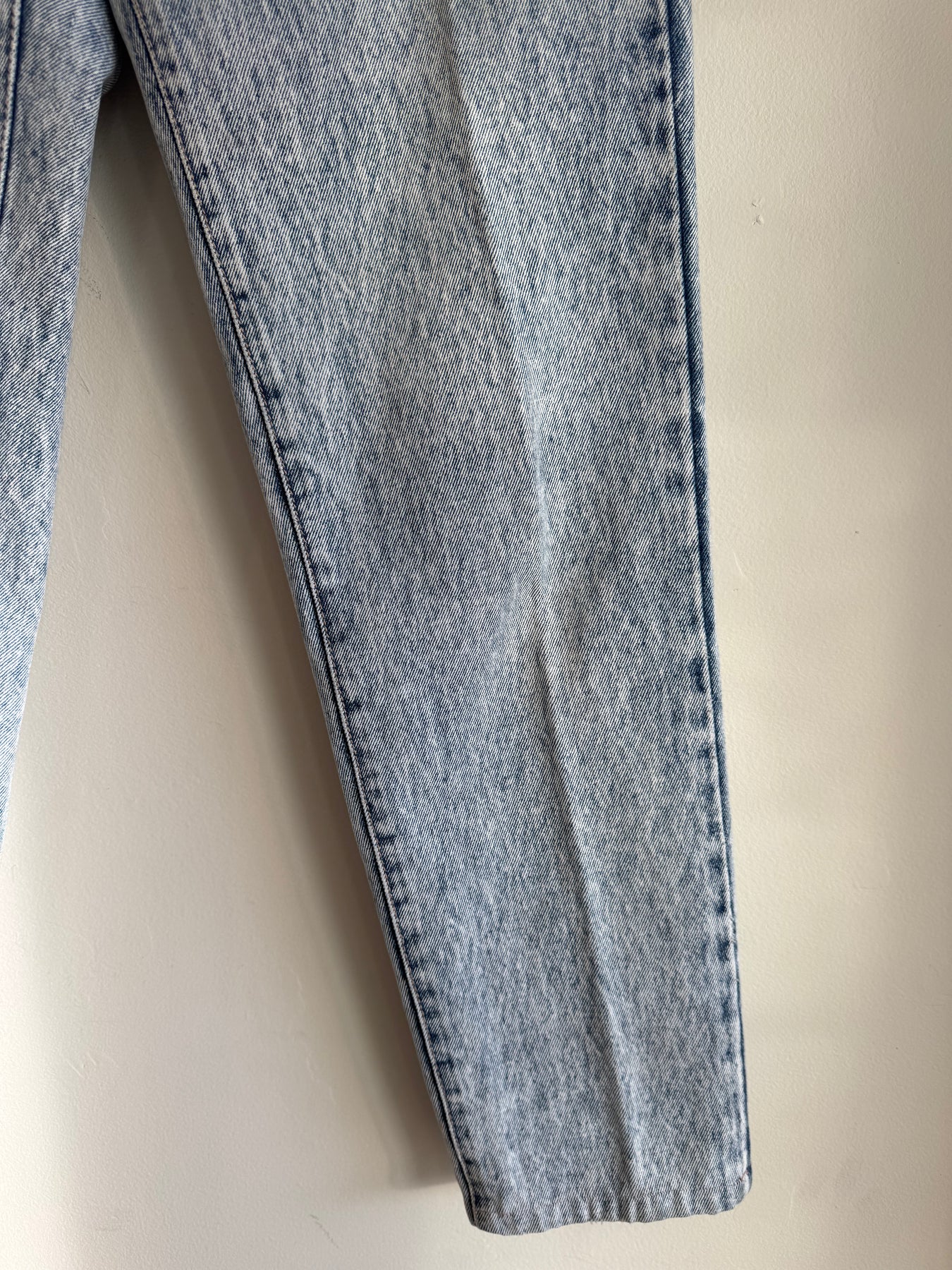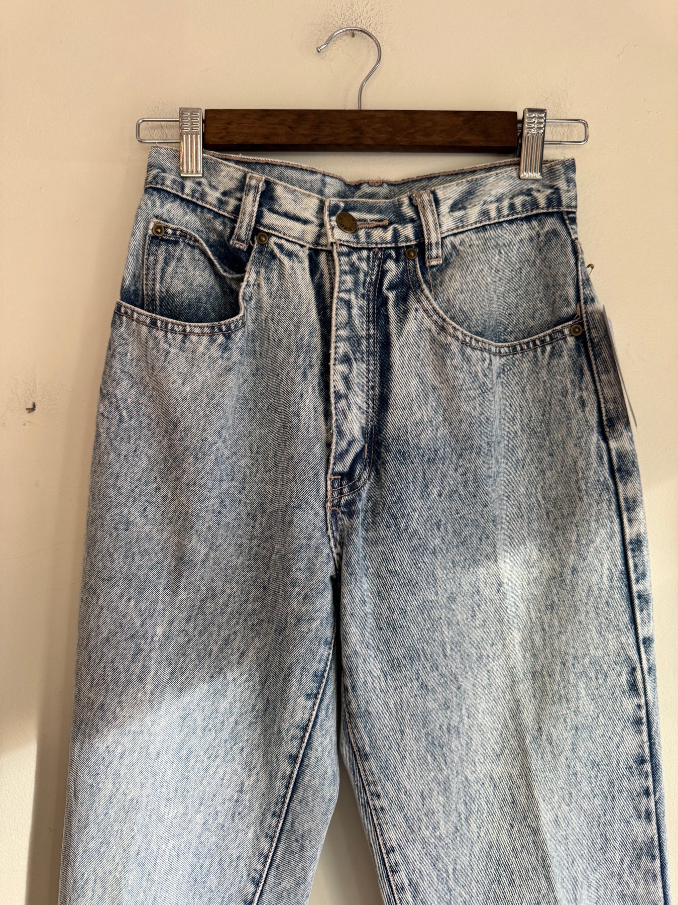 These fun Bluenotes acid Wash jeans have that 80’s touch. Tagged a size 28. Made in Hong Kong.